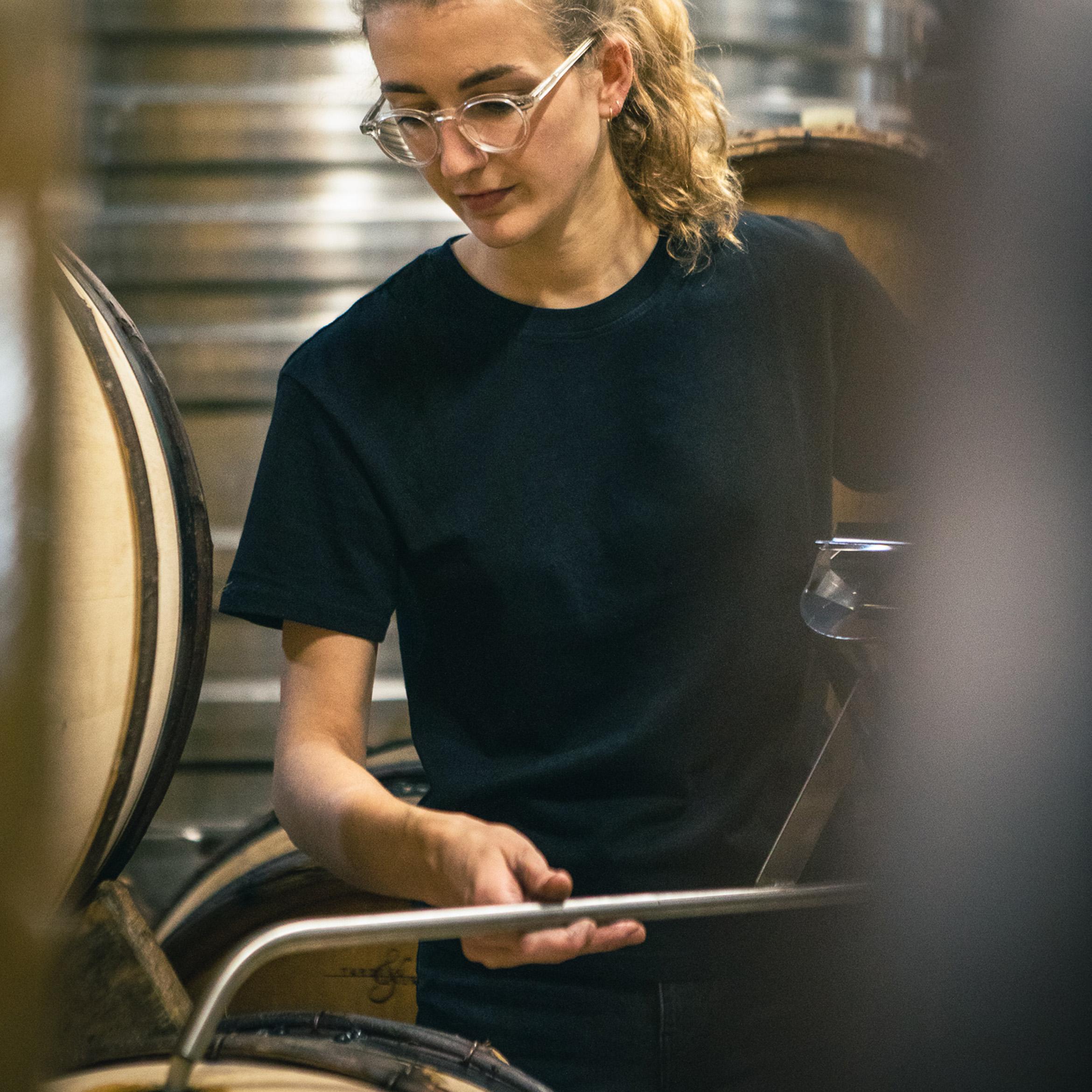 “Voor mij begon de liefde voor het domein al als klein meisje. Hoewel we niet op het domein woonden maar tien kilometer verderop, wilde ik op elke vrije dag met mijn vader mee naar de wijngaard. Mijn zus bleef liever thuis met een boek, maar ik wilde alles meemaken: bottelen, etiketteren, werken in de kelder. Toch was het nooit vanzelfsprekend dat ik het domein zou overnemen. Mijn vader legde me niets op en moedigde me aan mijn eigen weg te zoeken. Ik koos voor een opleiding in de zakelijke richting en reisde veel. Elke zomer keerde ik terug om in de proefruimte te werken. Steeds opnieuw voelde ik hoe bijzonder deze plek is. Pas later, toen ik al enkele jaren meewerkte, drong het volledig tot me door: wat een geluk om op eigen land te werken, eigen wijn te maken en daarvan te kunnen leven. Ondertussen werk ik hier al zeven jaar. Het gaat mij erom te behouden wat mijn vader en grootouders hebben opgebouwd, en daar stap voor stap mijn eigen visie aan toe te voegen. Ik wil geen revolutie, maar een evolutie, met ruimte om te falen en opnieuw te beginnen. De samenwerking met mijn vader is daarbij essentieel. We zitten op één lijn. Ik wil soms te snel, hij is rustiger en zegt dan: ‘Neem je tijd, het komt goed.’ We hebben bijna nooit ruzie. Met mijn moeder bots ik soms, maar met mijn vader eigenlijk nooit.”